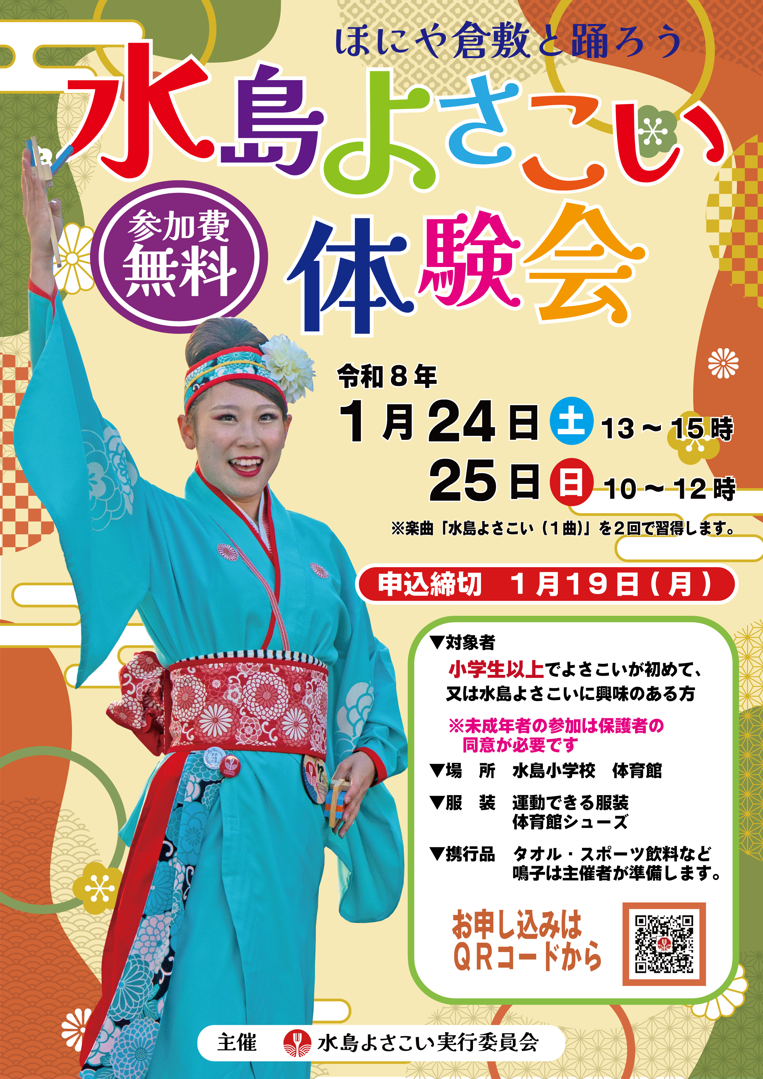 「ほにや倉敷と踊ろう 水島よさこい体験会(1月)」の開催について